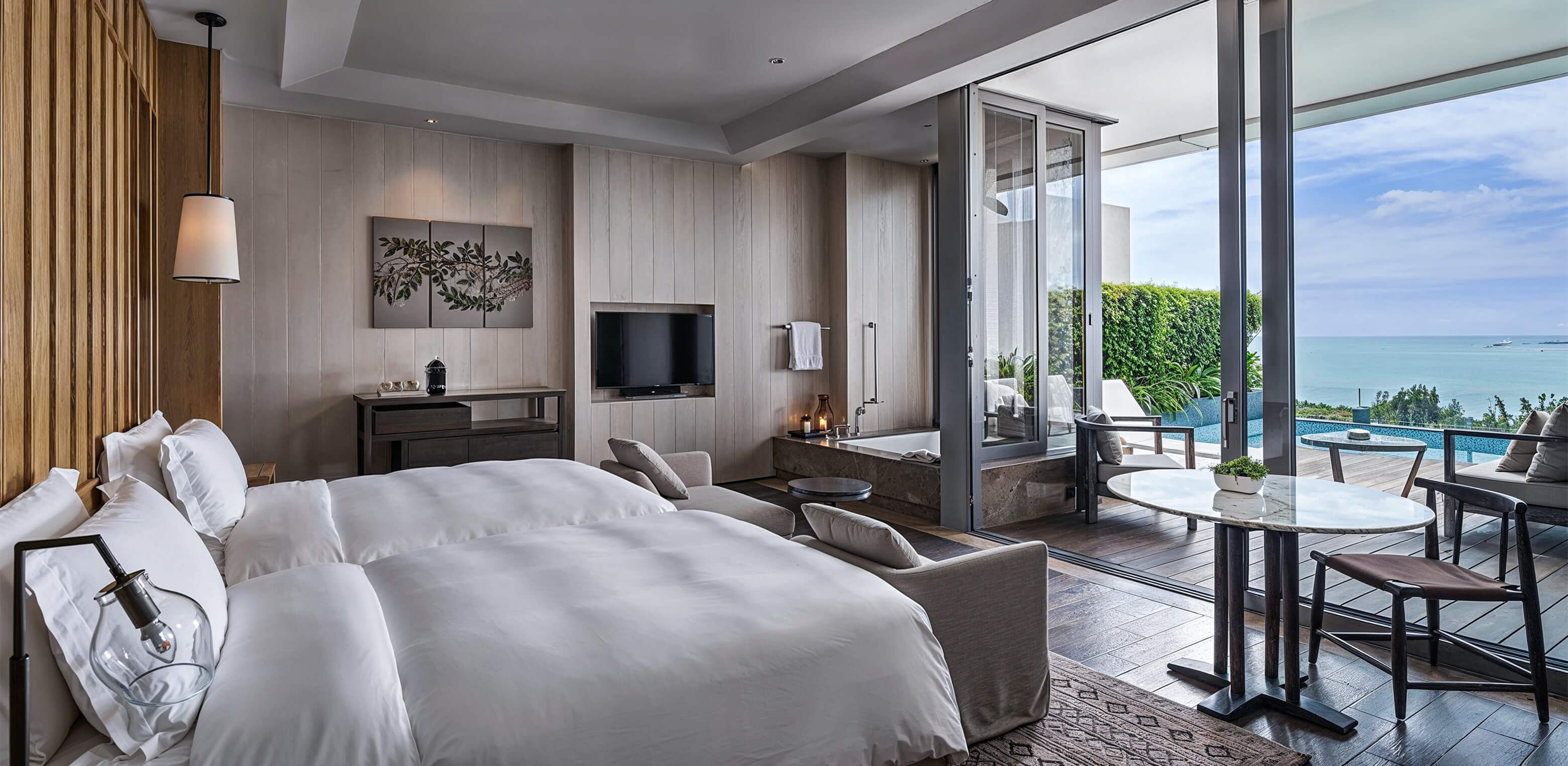 三亞海棠瑰麗的清晨,以一種溫柔的方式輕撫沉睡的夢。海風攜帶著(zhe)清新,輕吟著(zhe)贊歌,從(cóng)敞開的門窗間流連,喚醒每一個感官