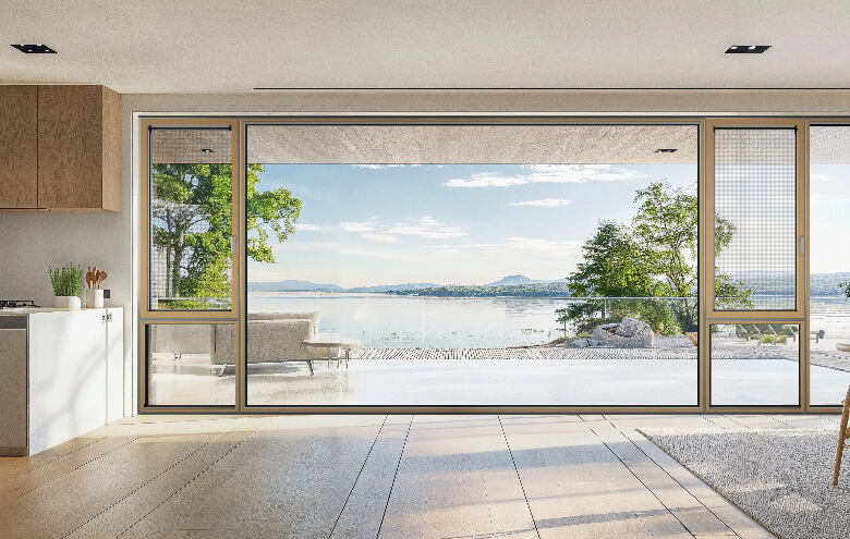 美觀性: 精飾門窗突破瞭傳統鋁型材飾面的局限,以溫潤細膩的觸感重新定義瞭門窗體驗。其優雅的外觀質感與室内窗台及木質結構完美融合,營造出渾然天成的空間美學。精選的天然材質回歸本真,讓您在觀景時不僅能享受視覺盛宴,更能感受到自然與人文的和諧共鳴